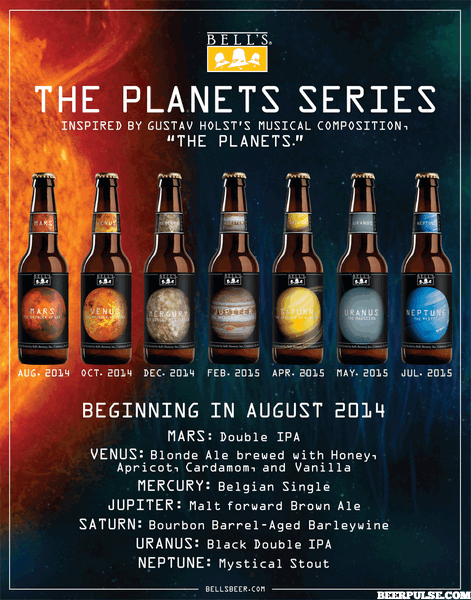 Bells Brewery will be releasing a “Planet Series” of beers according to http://www.beerpulse.com and a Bell’s press release. The list is below and there are some very intriguing offerings that will be coming out, but it looks like it’s going to be limited. Here’s more: