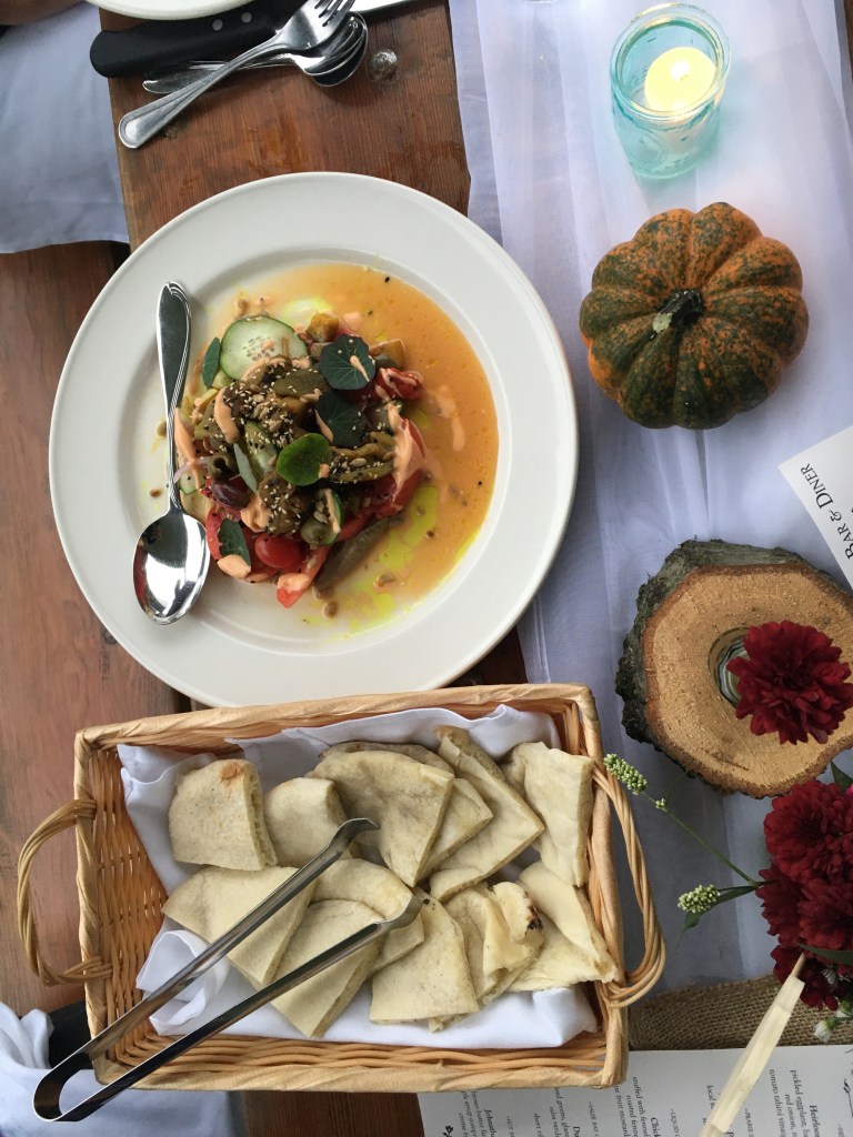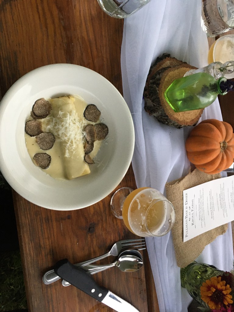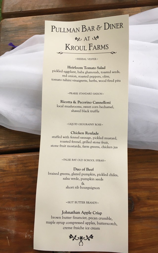 There is no better way to ring in fall than an amazing meal, and a few drinks while sitting at picnic table on a beautiful farm. In the last 5 years, fall for me has always started the day of the Kroul Farm/Pullman Diner dinner! In the past, the days were a bit warm at times, a bit chilly, and this year soggy and rainy but the staff from both places always go above and beyond and deliver an absolutely stellar and memorable dinner! Special shout out to the Kroul family, Cory Kent, Ben Smart, T.J. Lytle and all the chefs and staff that made this night happen again! On to the dishes: