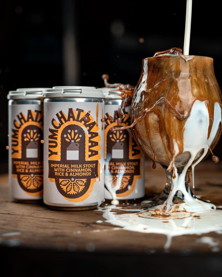 Yumchataaaaa is an Imperial Milk Stout with almonds and Cinnamon brewed with Flaked Rice and Rice Syrup. At 13% it comes in strong, but in a sweet and smooth package. These 4-packs of 8oz cans are perfect for an indulgent night alone or sharing with multiple friends.
