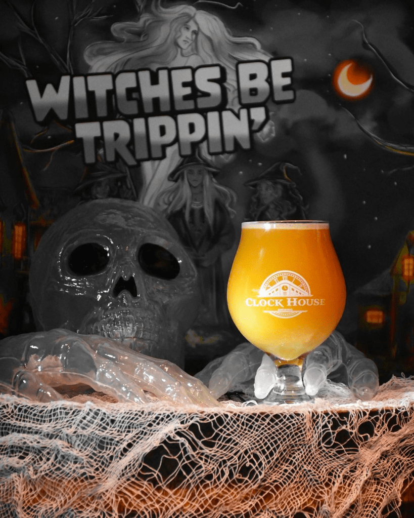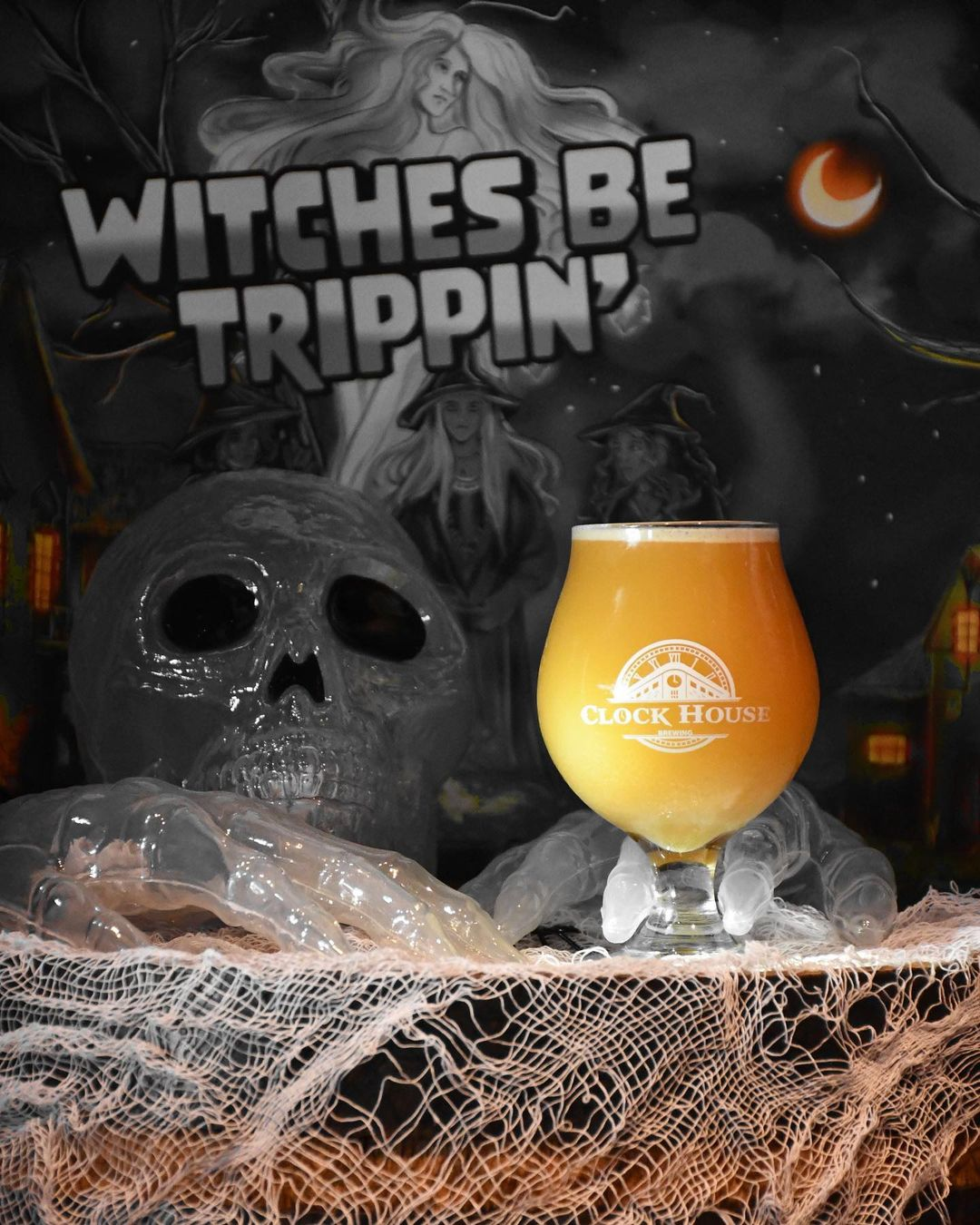 Witches Be Trippin is a Hazy Double NEIPA that was triple dry hopped with loads of Azacca, Idaho 7, Citra, and Mosaic.