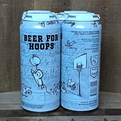 - Off Color Beer for Hoops 6/4/16oz CANS – American Cream Ale With Peaches And Vanilla Served On Nitro. 5% ABV – IL