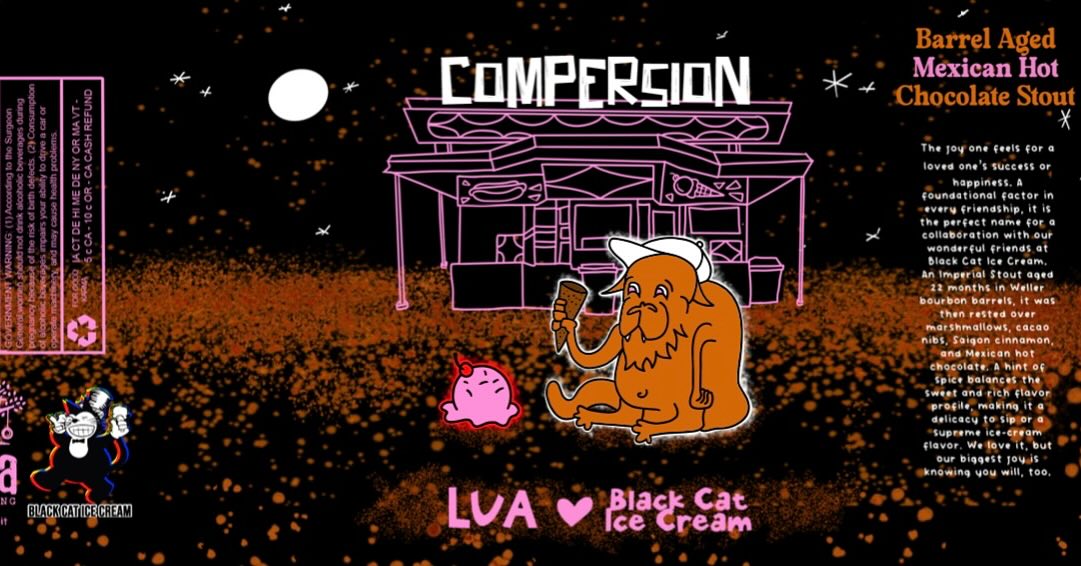 Inspired by the out-of-this-world Mexican hot chocolate flavor from the cool folks at Black Cat Ice Cream, bottles of COMPERSION will be available for purchase in person at Lua on Saturday, April 19th, starting at 9AM. First come, first served, with limits determined at open. We will have a limited number of bottles available online via TOAST at 9AM as well. Proxies are allowed. Picking up for a proxy? Just be sure to have their name & order number ready for us when you’re picking up.