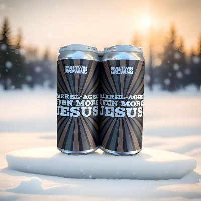 EVIL TWIN BREWING NYC – BARREL-AGED EVEN MORE JESUS 12/2/16oz CANS – Bourbon Barrel-Aged version of Even More Jesus, packed with even more of your favorite flavors and a higher ABV! A few times in the history of craft beer it has happened that a highly praised beer rises beyond mortal stardom into a higher godly league. Usually, the recipe to make such heavenly drops is thick fudge-like body, pitch black color, amazingly overwhelming aromas of chocolate, coffee, dark fruits and muscovado sugar, obviously only made in limited amounts and most crucial of all – it must be Bourbon Barrel-aged to make it taste even more rare! 13% ABV – NYC