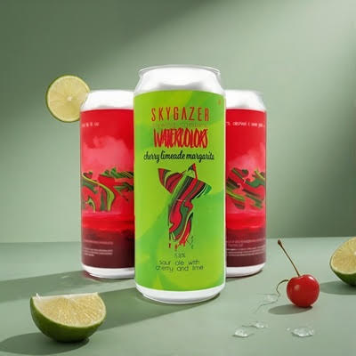 - Skygazer Watercolors Margarita 6/4/16oz CANS – Sour Ale with Cherry, Lime. Margarita vibes. . Watercolors Cherry Limeade Margarita is bright, refreshing. 5.5% ABV- CT