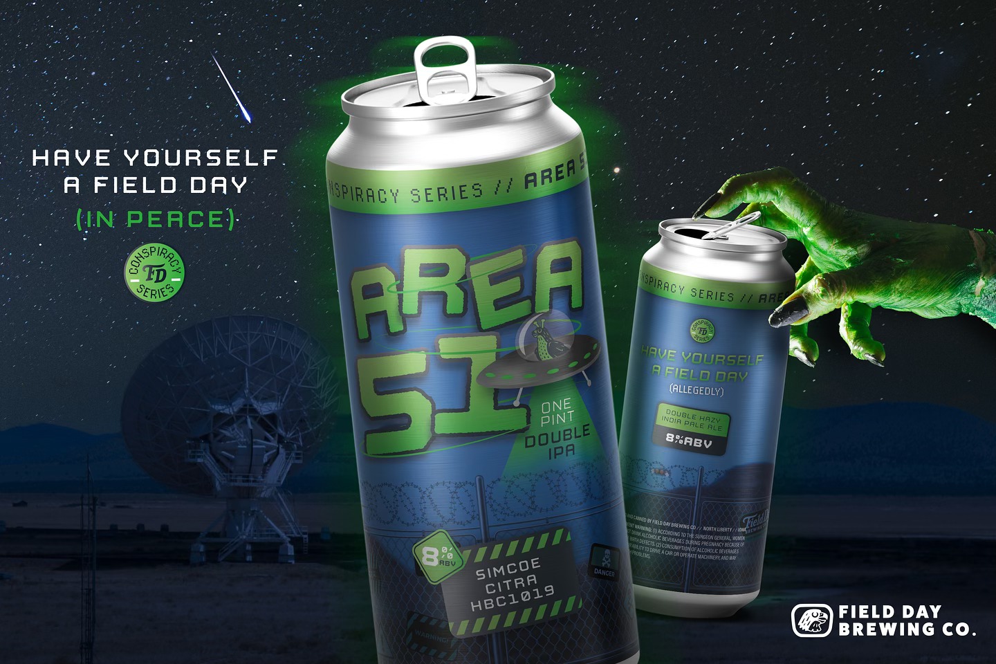Field Day Brewing releasing “Area 51” DDH IPA 7/19 as part of their “Conspiracy” series!