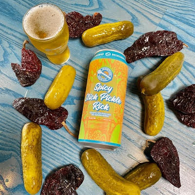 - Mikerphone Brewing – Spicy Slick Pickle Rick 6/4/16oz CANS – Golden Ale with Pickle Juice and Habanero Peppers. First, it is pickle, then there is a beautiful lingering heat that tingles the lips and makes you want another sip. 5% ABV – IL