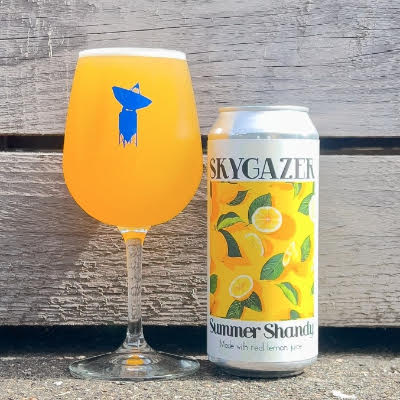 - Skygazer Summer Shandy 6/4/16oz CANS – Fact: beer + lemonade = joy! A warm weather crusher, perfect for the coming months! Made with real Lemon Juice. 4.5% ABV – CT