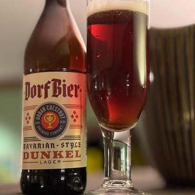 - URBAN CHESTNUT DORFBIER 6/4/16oz CANS – Munich Dunkel. Some refer to the Dunkel style as the original bier of Munich and its surrounding villages (Dörfer). This everyday bier ranges in color and sweetness depending on the amount of Munich and roasted malts used. The sweetness of the malt is then balanced by the use of another Bavarian friend…the Hallertau hop…in this specific case, Hersbrucker, grown near Wolnzach, Hallertau. 5.2% ABV – MO