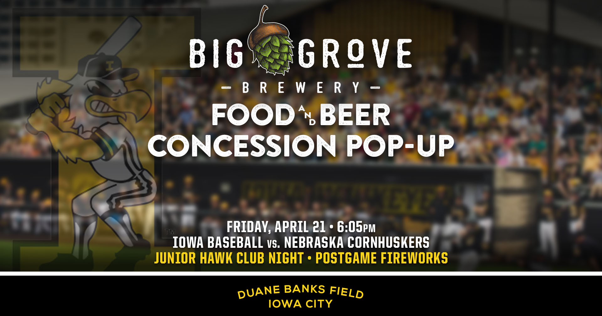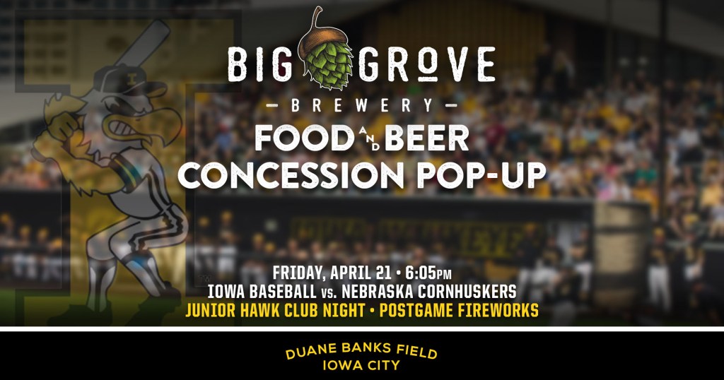 Big Grove Brewery is excited to share our first food and beer concession pop-up at Duane Banks Field Friday night when the Hawkeyes take on Nebraska at 6:05 in Iowa City.