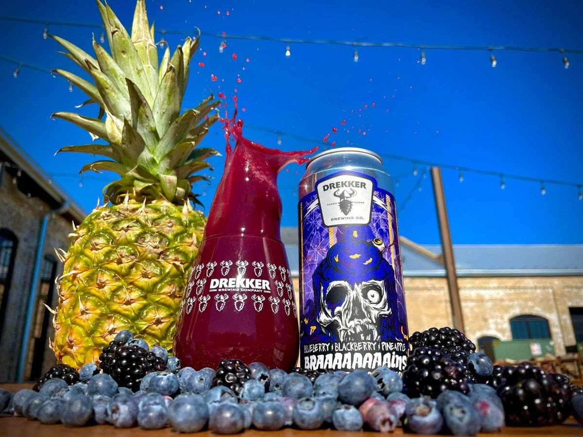 Braaaaaaains Blueberry/ blackberry/ pineapple Double Fruit Sour We blasted this one with all of the Blueberry, Blackberry & Pineapple we could get our grubby little hands on and then hit it with our double secret smoothie treatment of sea salt, lactose, and vanilla.