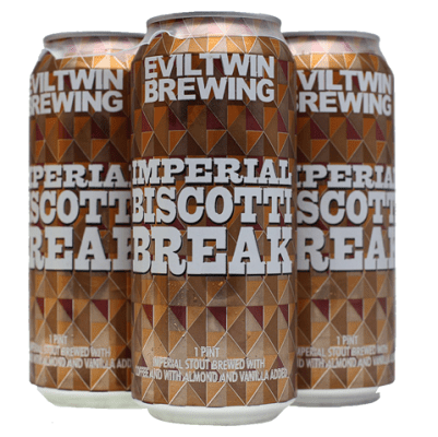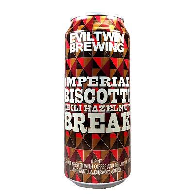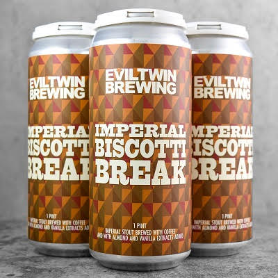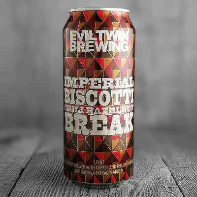 - EVIL TWIN IMPERIAL BISCOTTI BREAK 6/4/16oz CANS – Imperial Stout with Almonds, Espresso, Vanilla – 11.5% ABV – CT