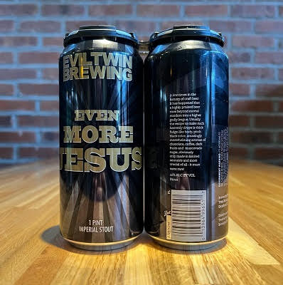 - EVIL TWIN EVEN MORE JESUS 6/4/16oz CANS – Evil Twin OG Imperial Stout – 12% ABV – CT