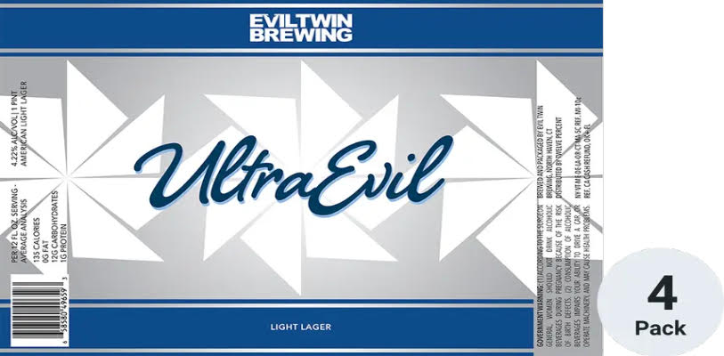 - EVIL TWIN ULTRA EVIL 6/4/16oz CANS – American Light Lager. The perfect prescription of the Hair of the Dog. 4.22% ABV – CT