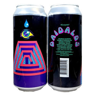 - Omnipollo Daidalos 6/4/16oz CANS – Double Almond Double Chocolate Double Coffee Imperial Stout. A rich decadent imperial stout full of almonds, cocoa nibs and coffee reminding us of the flavorful cakes we loved to eat. Contains nuts. 12% ABV – SE