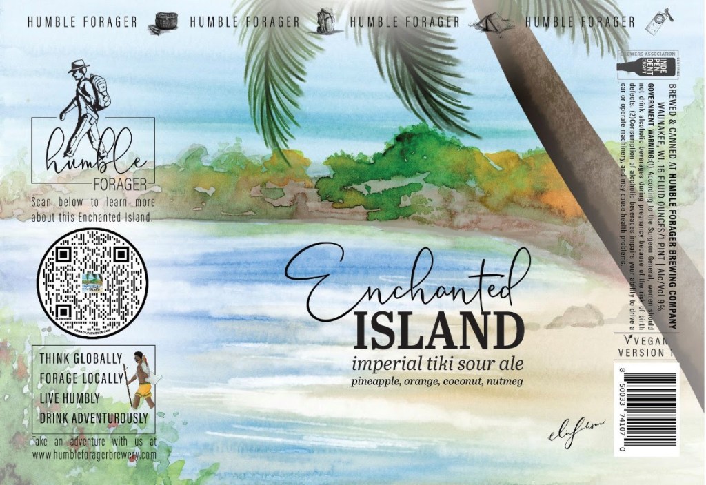 Humble Forager Enchanted Island V2(Jamaican Punch) 6/4/12oz Sleek CANS – This version of Enchanted Island is inspired by a Jamaican Punch cocktail. Vibrant passion fruit, juicy orange, and smooth coconut take center stage, backed by zesty lime, a touch of cranberry and sweetened by pomegranate simple syrup. VEGAN 9% ABV – MN