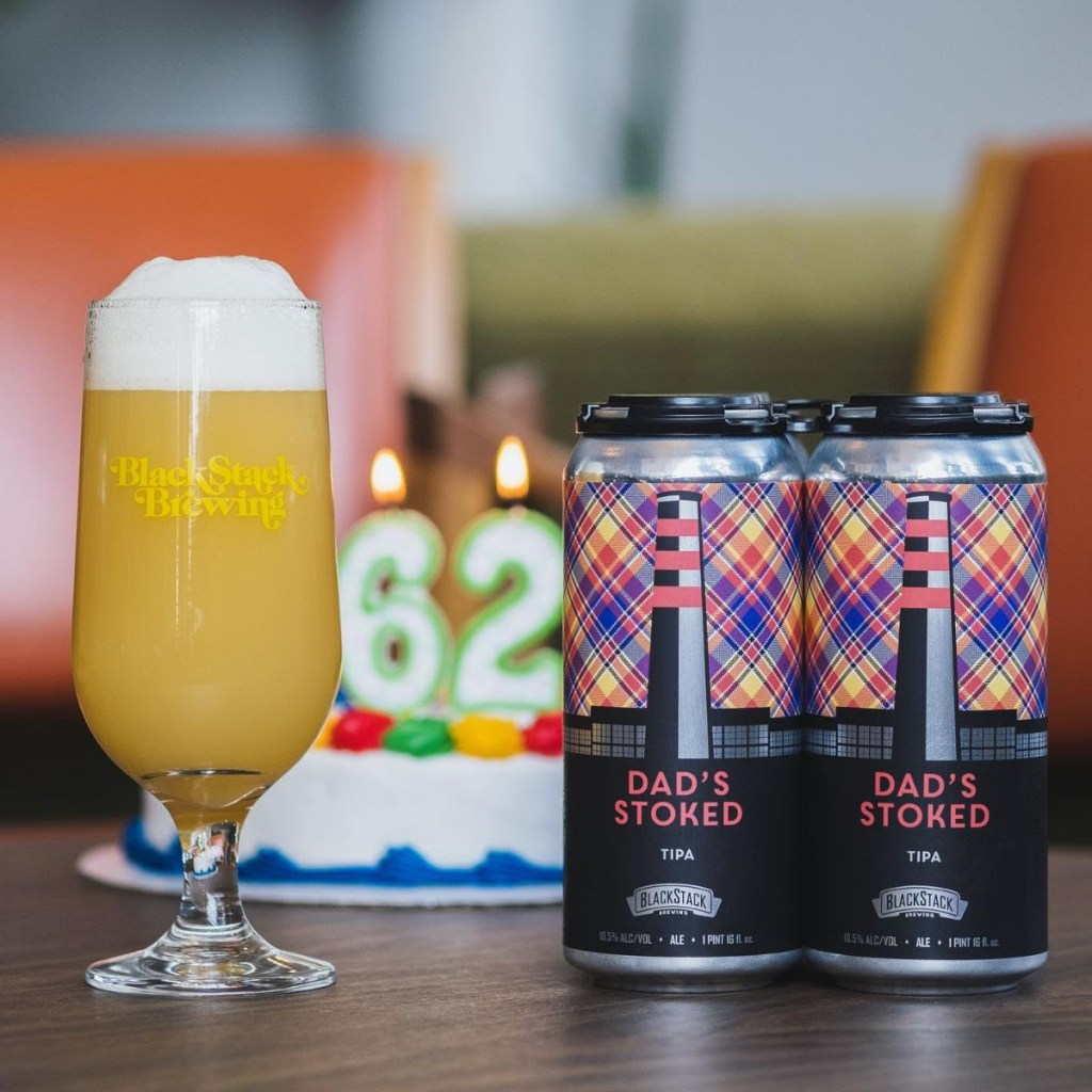 Dad’s Stoked Triple IPA – 10.5% Our annual can based voyage to bad decision juice territory for Papa Scott’s Day of Birth. Based on our DAD JOKES grain bill & hop schedule, but with properly elevated portions of our Hand-Selected Mosaic, Citra & Sabro Cryo, this time with New Zealand Nelson Sauvin to hit those Clarence Clemons low notes.