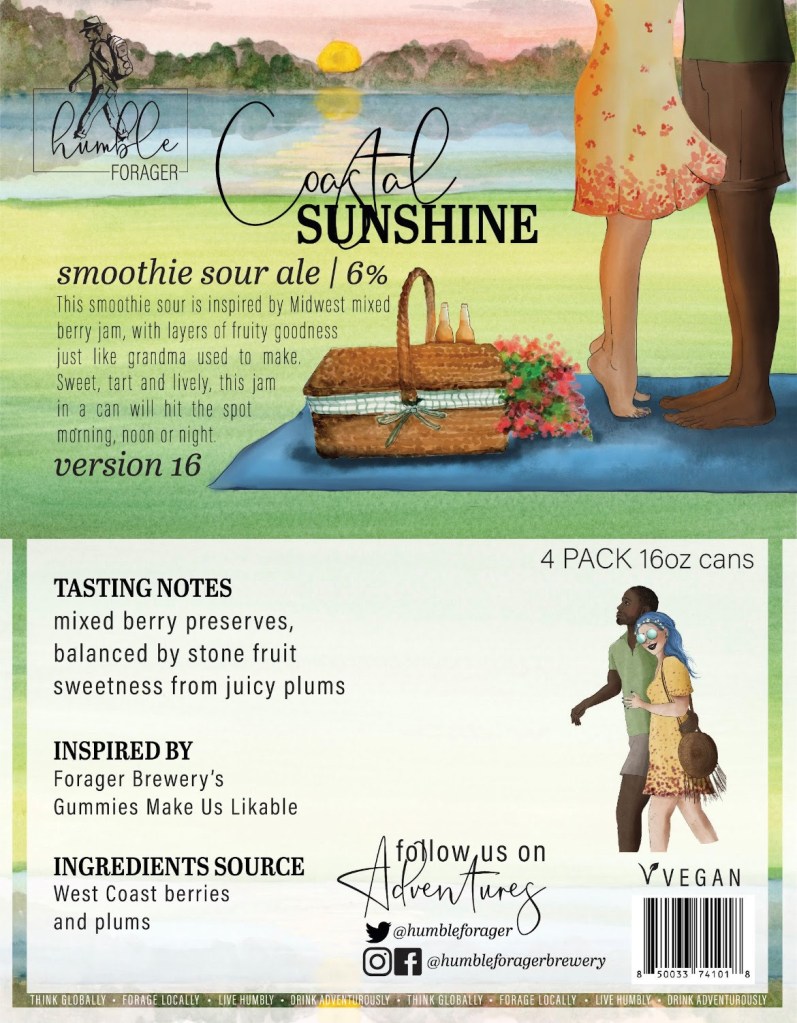 Coastal Sunshine V16 – Smoothie Sour Ale This smoothie sourale is inspired by Midwest mixed berry jam, with layers of fruity goodness, just like grandma used to make. Sweet, tart and lively, this jam in a can will hit the spot morning, noon or night!
