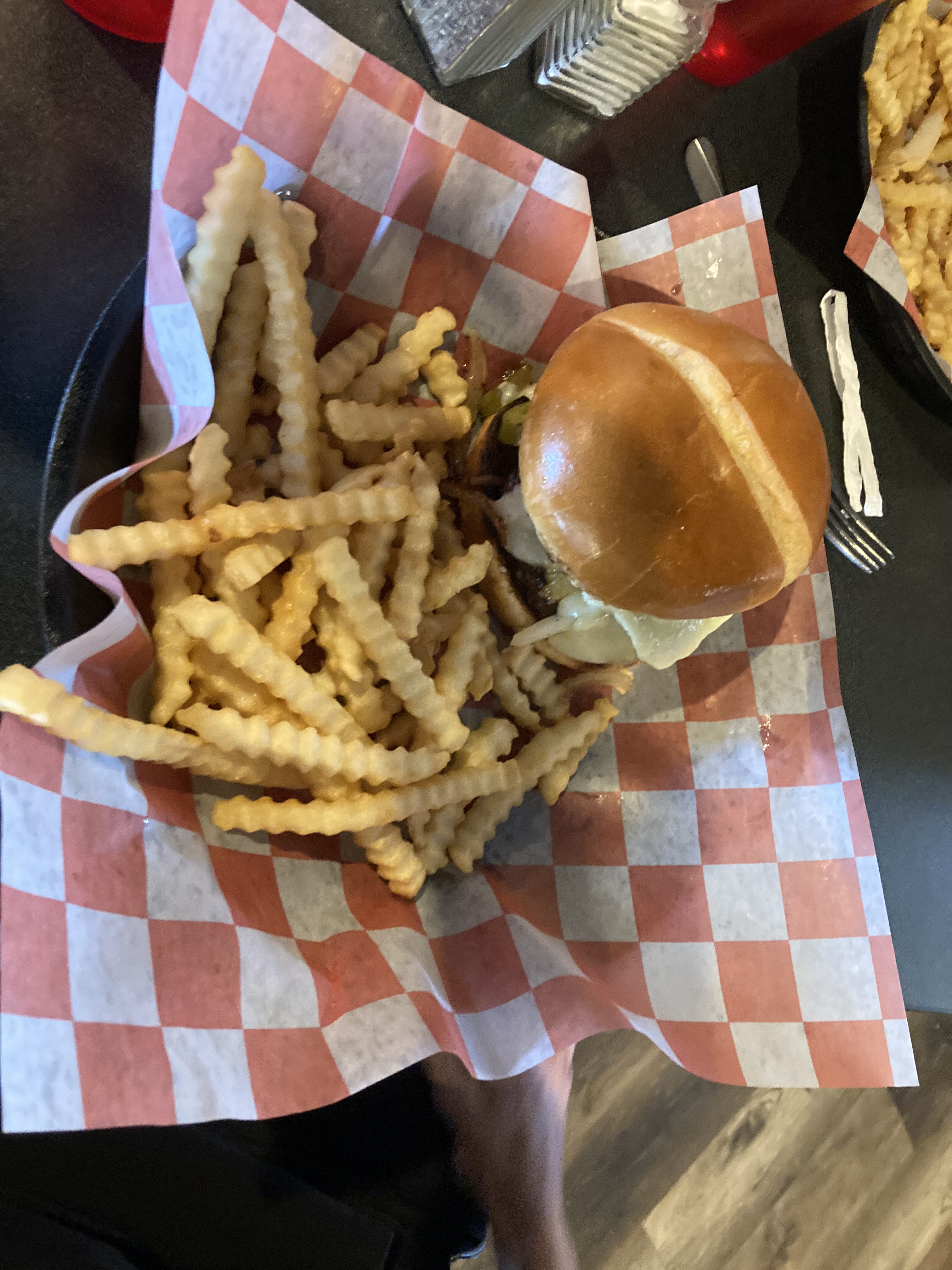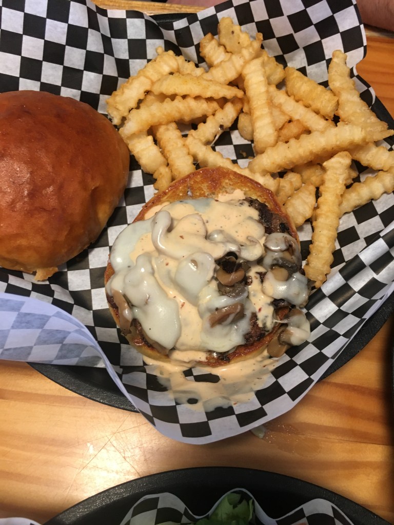 Although I wasn’t very hungry, their menu has a lot of intriguing options. I let my sign go crazy, if queso is on the menu, he’s going to order it, that with an order of sliders and a mushroom swiss burger. A lot more than I anticipated but was game to try it all. Queso came out first and was delicious, warm and crispy tortilla chips. Paired well with the beer. Sliders and burger next, meat quality tasted wonderful, perfectly seasoned. The crinkle cut fries served as the side also went well with the queso dip.