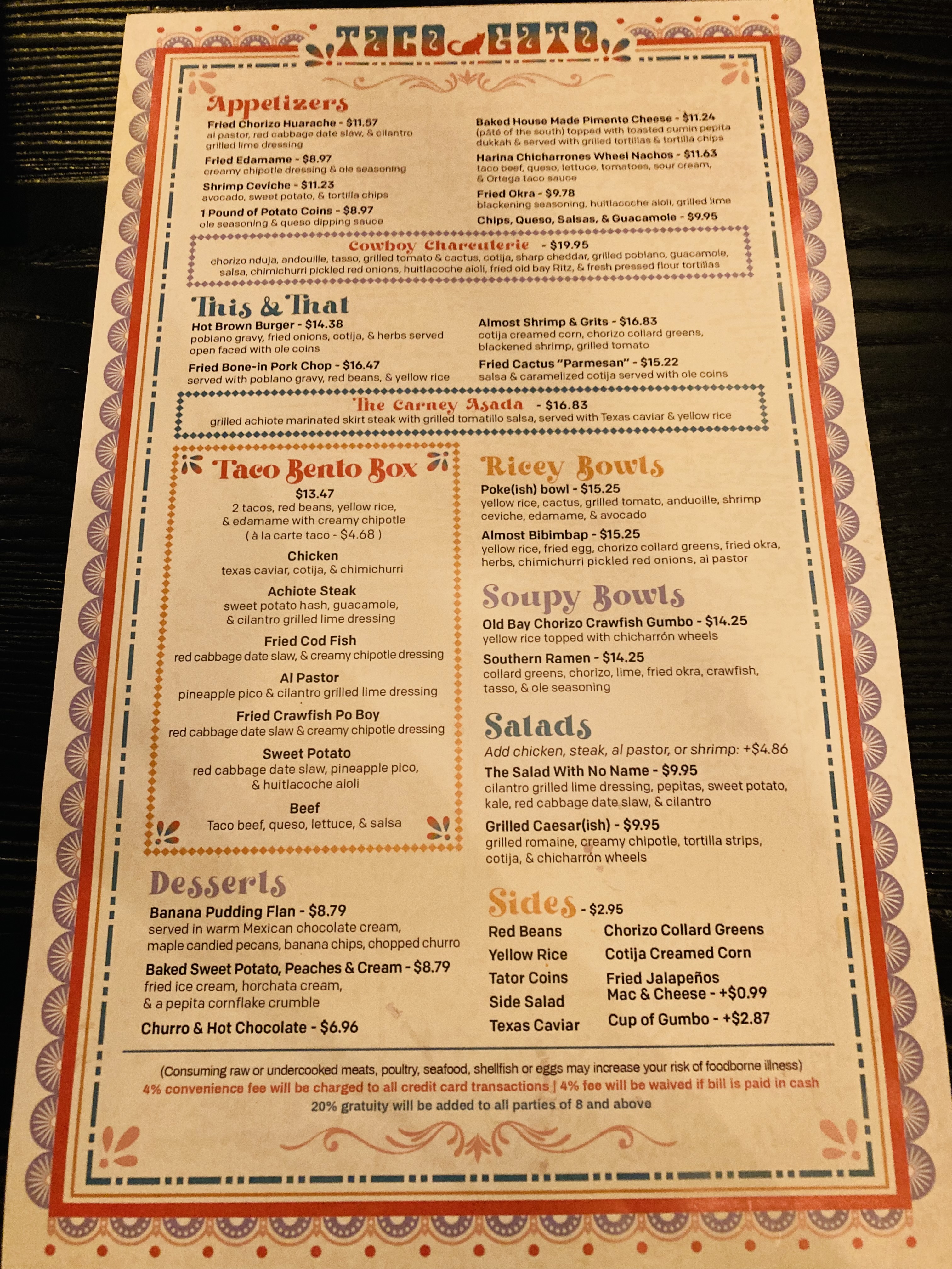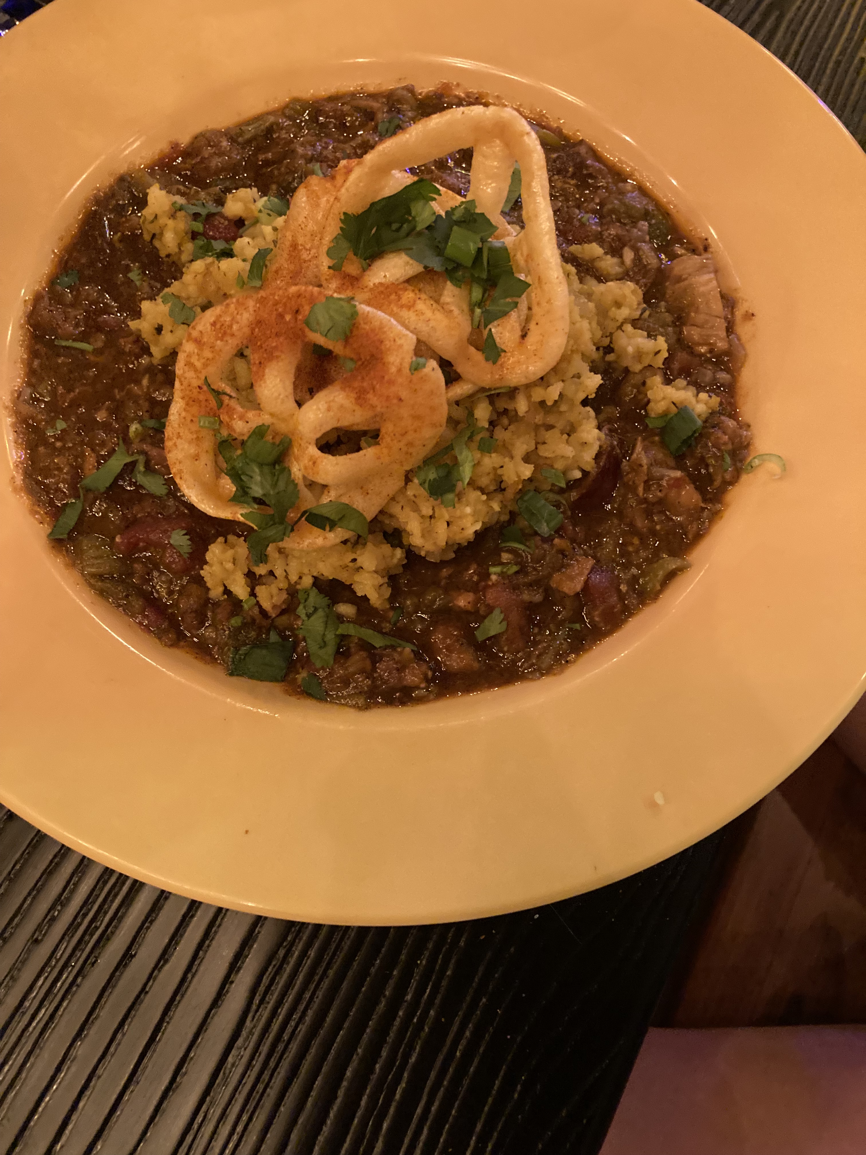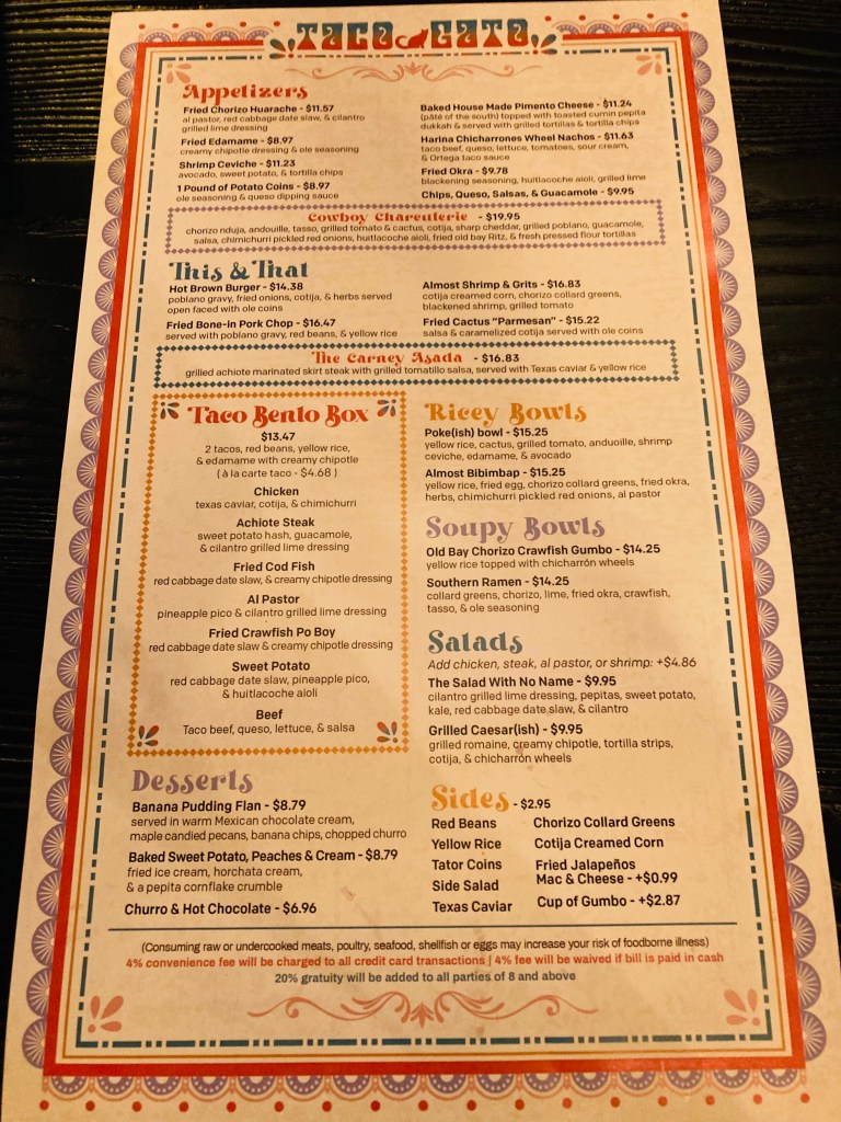 I let the kids decide what to order as my focus automatically goes to fish tacos and pastor tacos. My son went with the fried crawfish tacos but also wanted to try the shrimp and grits, and my daughters went with the gumbo. Enough to feed an army but grateful my kids are willing to try and experience new foods.