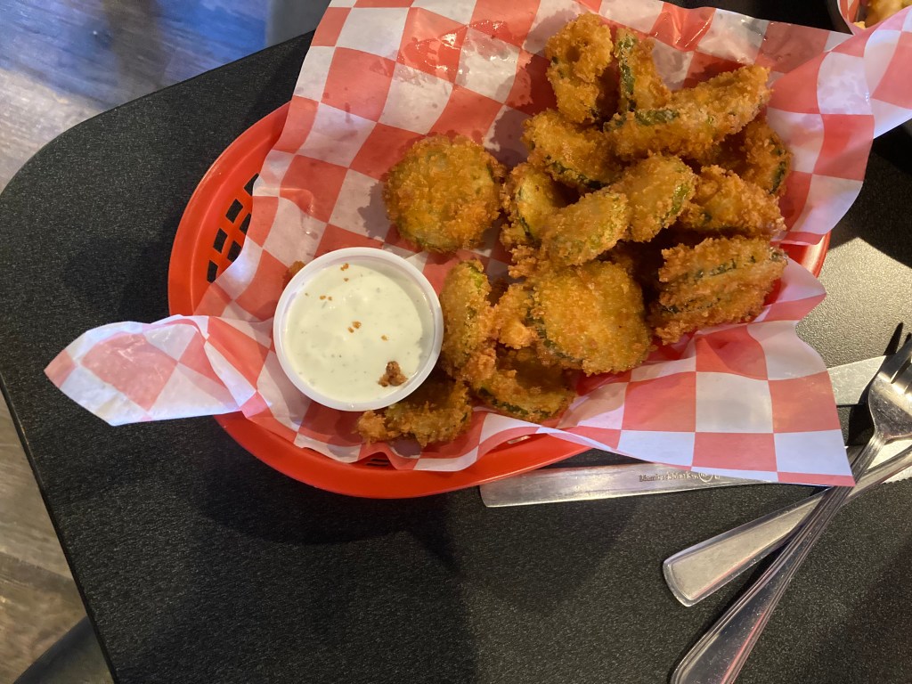 APPS: My kids and I all ordered something different so we can try and share as much as possible. We started with a the pickle chips…now, I love fried pickles, but I’ve been picking about ordering them if they are not fried pickle chips because a spear upon your first bite, pulls the whole spear out and you end up burning your face. Like the spear, don’t like the burn…so pickle chips are the way to go and these were hand battered and delicious.