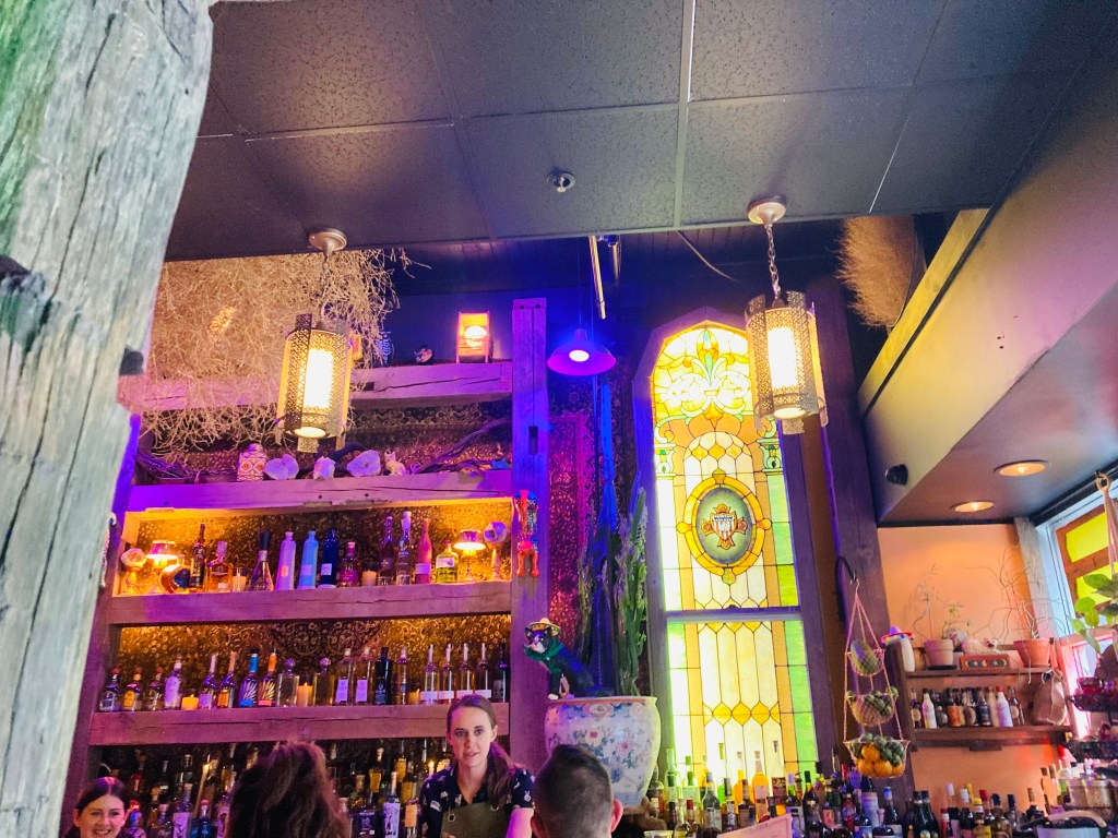 I was lucky enough to be invited to the soft opening this past Friday night and was joined by three kids. The decor of the place is definitely Mexican inspired and my kids enjoyed seeing the array of Luchador wrestling masks around the restaurant. The bar was dimly lit as light from the beautiful stained glass showcased the many bottles of booze that go towards the many cocktails Taco Gato offered.