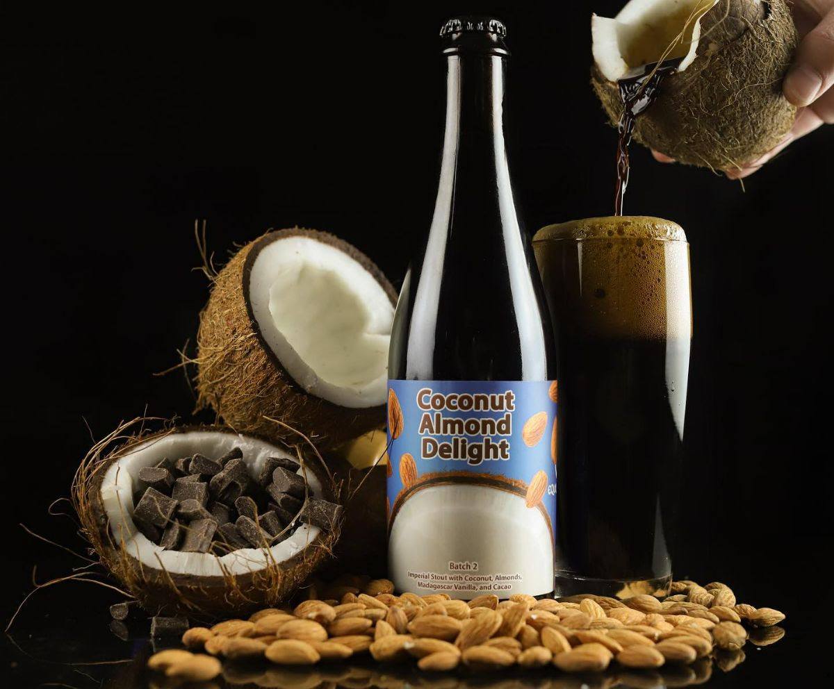 Limited release – Coconut Almond Delight – Imp stout (almond joy bar) We wanted to liquify one of our favorite candy bars so we boiled up a big base stout and conditioned it on shredded coconut, almonds, Madagascar vanilla, and cacao nibs.