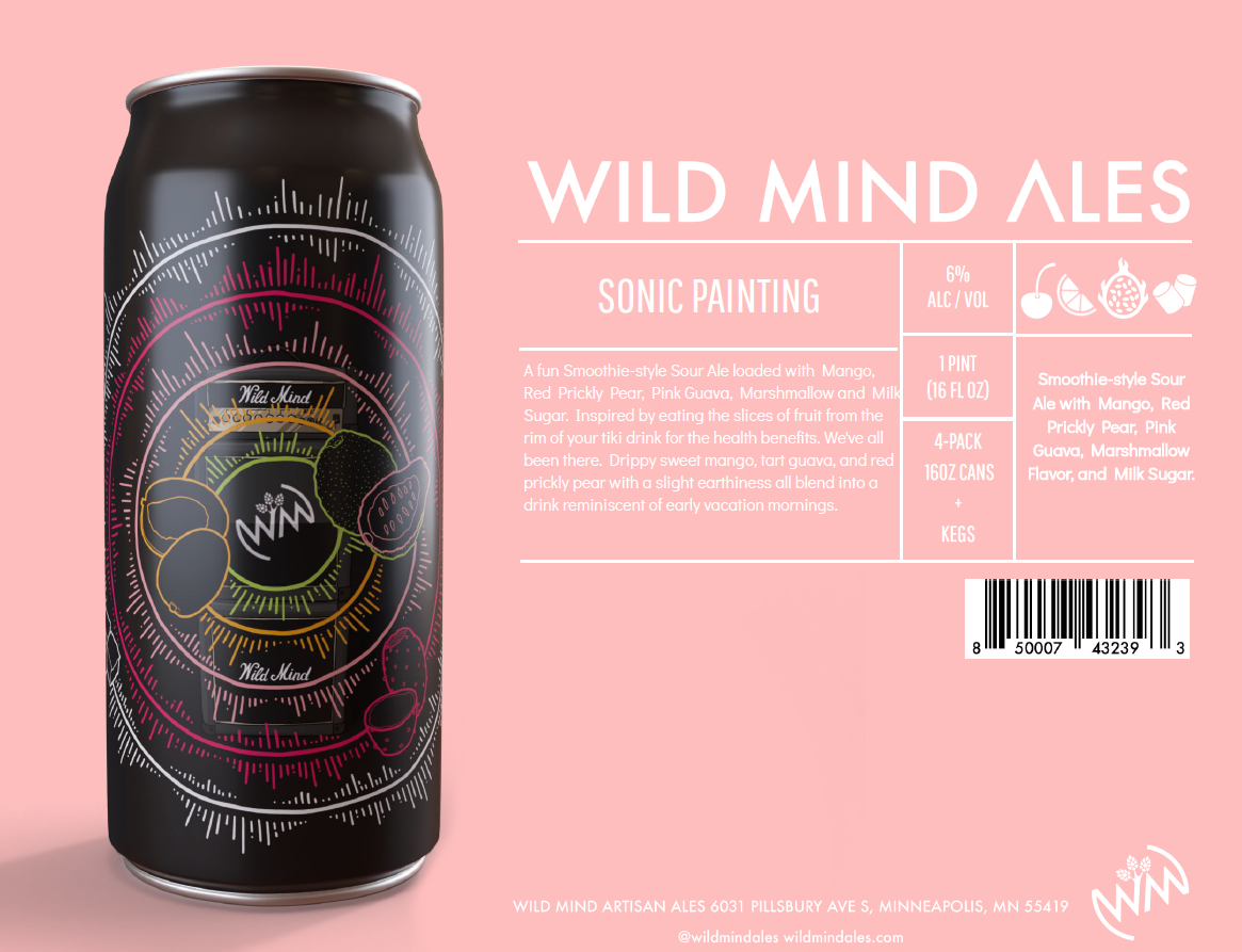 Sonic Painting – Fruit Smoothie style Sour 6% ABV A fun smoothie style sour ale loaded with Mango, Red Prickly Pear, Pink Guava, Marshmallow and Milk Sugar. Drippy sweet mango, tart guava, and red prickly pear with slight earthiness all blend into a drink reminiscent of early vacation mornings.