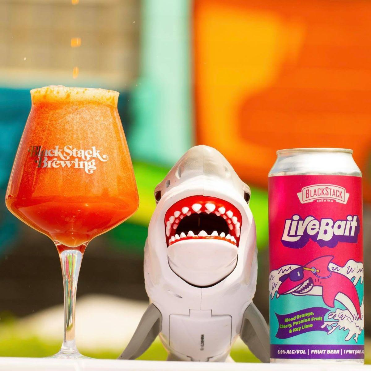 Live Bait – Fruited Sour (6.9%) We got bloody crazy with terrifying helpings of Passion Fruit, Tart Cherry, Blood Orange, & Key Lime in honor of @sharkweek