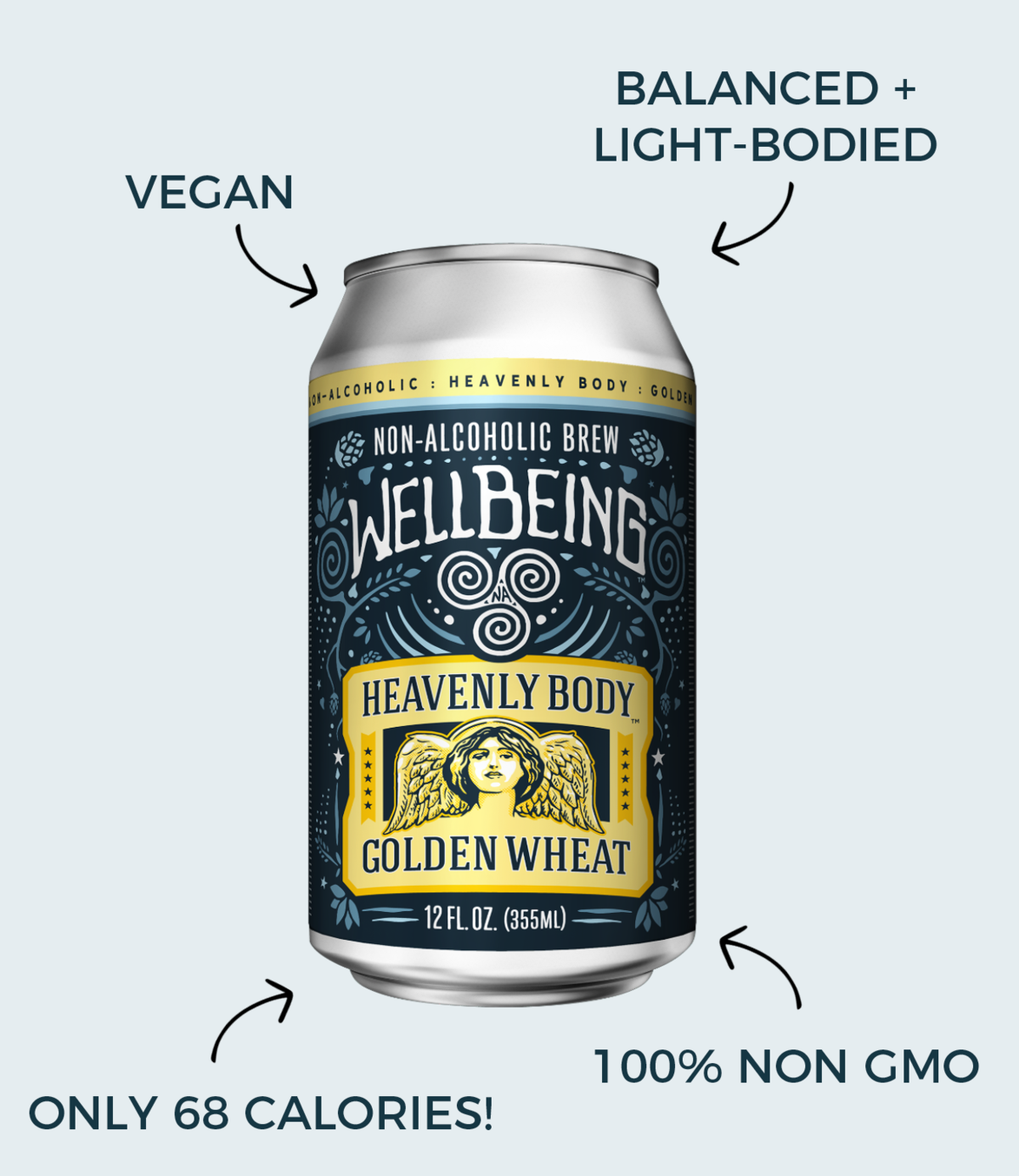 Heavenly Body Golden Wheat Heavenly Body Golden Wheat is based on a Great American Beer Festival award-winning recipe. This American-Style Wheat has more flavor than its light lager cousins. We add a hint of Cascade and German Traditional hops for a slight citrus character that balances the lighter malts. It’s dry, crisp and smooth, with a full-bodied mouthfeel. With only 68 calories, this is the perfect NA craft beer for after sports, yoga, marathon training, or anytime you are taking care to watch what is going in your heavenly body.