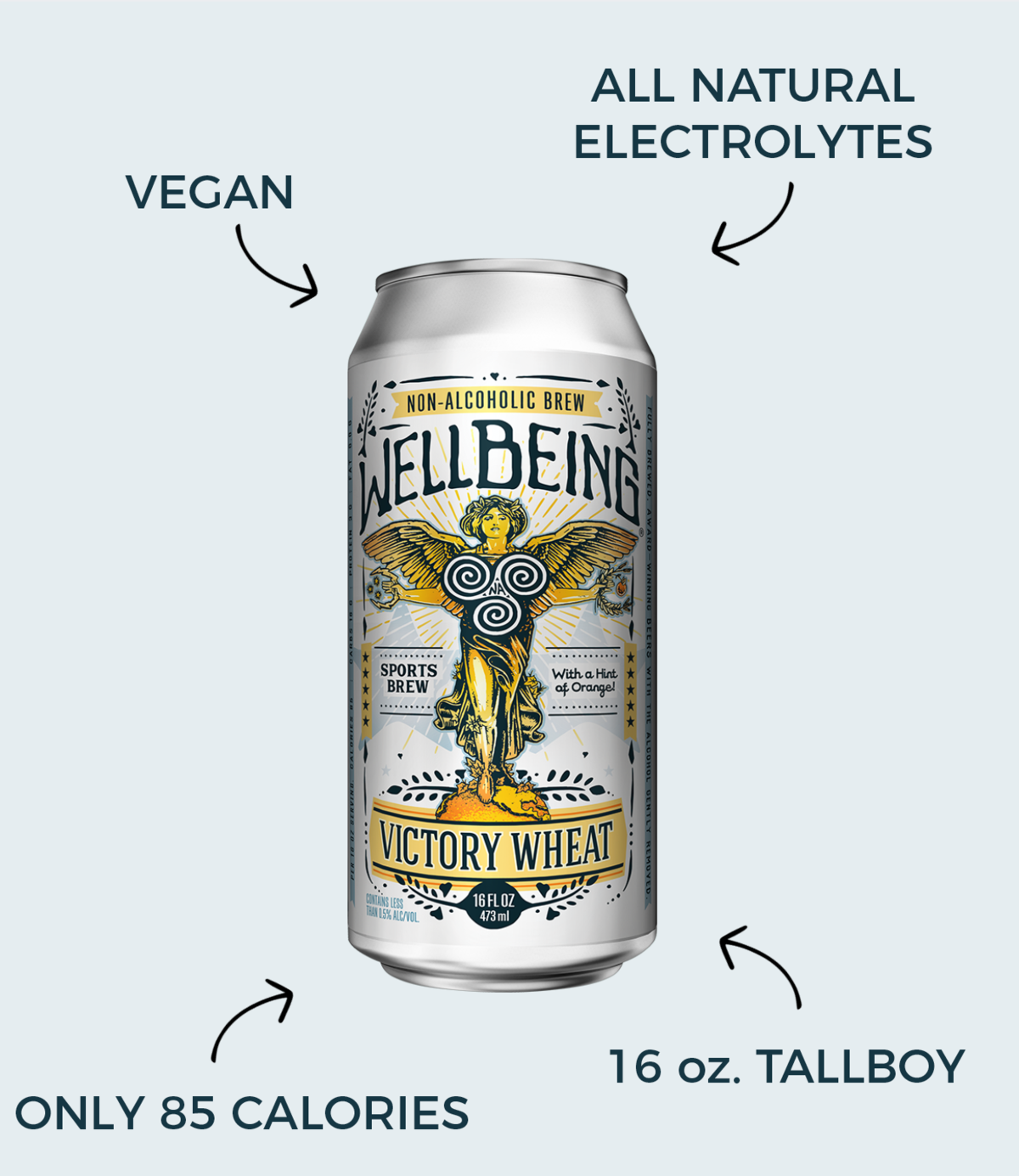Victory Wheat Victory Citrus Wheat is the first non-alcoholic craft beer enriched with a full spectrum of all-natural electrolytes, vitamins, protein, antioxidants, and anti-inflammatories. Purpose-brewed with a hint of orange zest, this functional NA beer pairs well with anytime fitness activities and post-recovery workouts to replenish hydration and quench thirst. Our crisp citrus wheat NA beer is only 85 calories, offered in 16oz cans and brewed with a hint of orange zest. Upgraded with Buoy, a formula of electrolyte supplements developed to meet the hydration standards of the World Health Organization, WellBeing Victory Wheat is worthy of the title “World’s Healthiest Beer”!