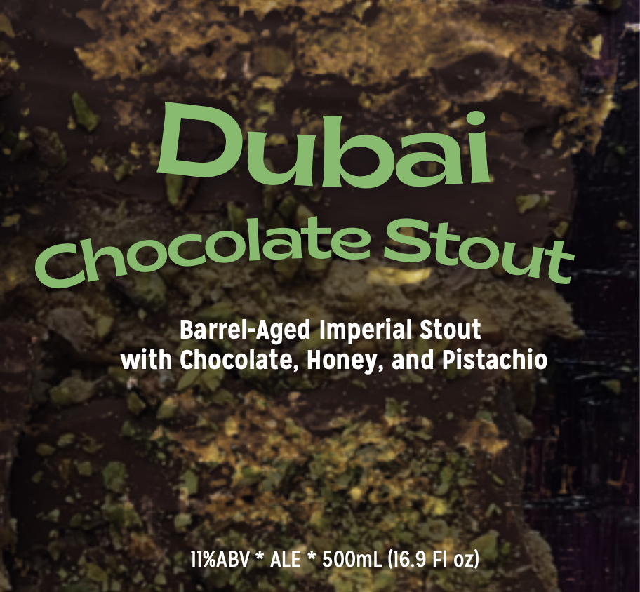 Dubai Chocolate Stout (Barrel-Aged Imperial Stout with Honey, Pistachio, and Cacao, 11%) – The chocolate bar we love, in beer form!