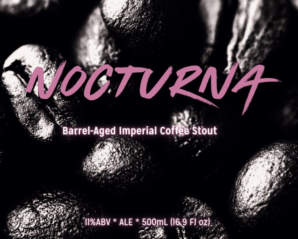 Nocturna (Barrel-Aged Imperial Stout with Dash Coffee, 11%) – Our barrel-aged stout blended with a special roast done by Dash Coffee just for this beer!