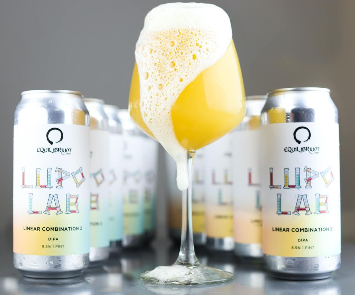 Lupo Lab Linear Combination 2 (8.0 % DIPA) Pouring a vibrant yellow color, Linear Combination 2 offers notes of dank glasses of champagne with tangerine and mango wedges in fresh hop fields. Intense and saturated flavors of juicy citrus, ripe mango, and notes of a melon await with heavy earth and a touch of pine. This beer is aggressive and soft at the same time with an escalating juiciness builds into a #EQjuice finish.