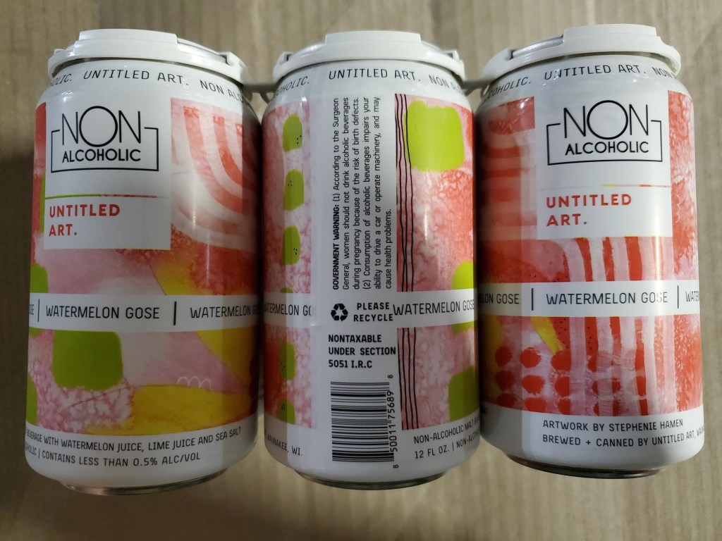 Watermelon Gose – Non Alch beer (0.5% abv or less)The world of Non Alcohol beer is exploding and “healthy drinking” in in-style. Untitled art has a line of Non-Alch beers including Florida weisse, Juicy IPA and Chocolate milk stout. Today we are introducing Watermelon Gose and it’s fantastic! It’s made with Watermelon juice, Lime juice and sea salt.