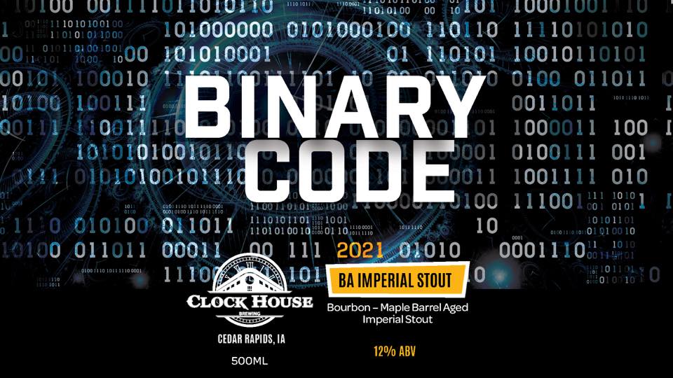 BINARY CODE Bourbon- Maple Barrel aged for over one year. This Imperial Stout is as smooth as it gets. Notes of molasses and maple rounded off with sweetness on the back end. Bottles of Binary Code will be available at noon on Thursday, December 23rd until supplies last. These will be sold exclusively inside our taproom. Pre-sales will not be offered. Available on draft. $20 per 500 ML bottle