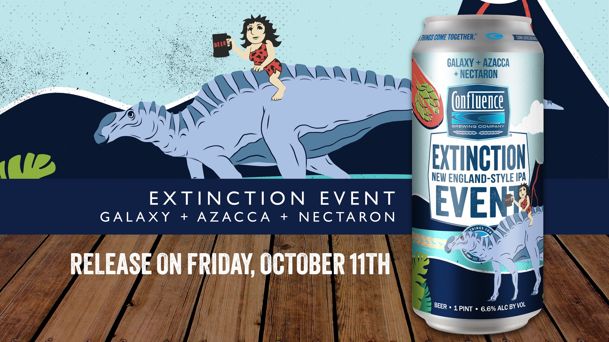 Get ready for an out-of-this-world experience! The Extinction Event – Galaxy + Azacca + Nectar will be on tap on October 11th. Each batch is created with a similar malt backbone but with enough variance from its own sequence of lush, tropical-forward hops to be a unique species. Our passion for maximum flavor drives our unstoppable quest for incredible hop combinations. In this fun-filled exploration of the depths of the lupulin landscape, we are proud to share a fleeting glimpse of our short-lived creation. Don’t miss your chance to experience this one-of-a-kind brew!