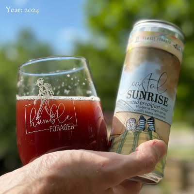 - Humble Forager Coastal Sunrise V1 6/4/12oz Sleek CANS – Intensely Fruited Breakfast Pastry Sour w/ Blueberry, Maple Syrup, Vanilla, Cinnamon. VEGAN 6% ABV – MN