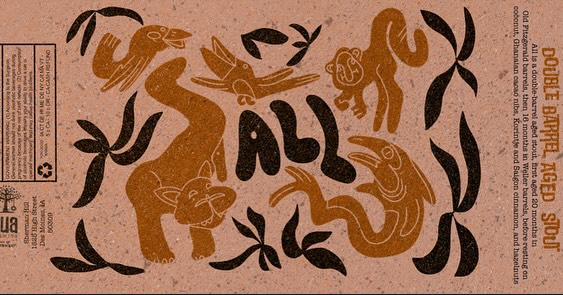 ALL 2025 is a double-barrel aged stout, first aged 20 months in Old Fitzgerald barrels, then 16 months in Weller barrels, before resting on coconut, Ghanaian cacao nibs, Korintje and Saigon cinnamon, and hazelnuts.
