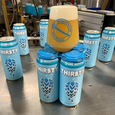 - Mikerphone Brewing – Thirsty – 6/4/16oz CANS – Double Dry-Hopped Double India Pale Ale with Nelson Sauvin, Citra, and Mosaic Hops. 8% ABV – IL