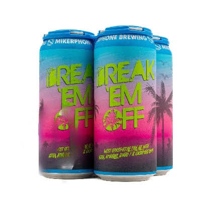 - Mikerphone Brewing – Break Em Off 6/4/16oz CANS – West Coast-Style Pale Ale w/ Citra, Amarillo, Idaho 7, and Cashmere Hops. Heavy handed with the Hops on this one, but dialed down the ABV. It’s a CRUSHER that packs a punch! 5.7% ABV – IL